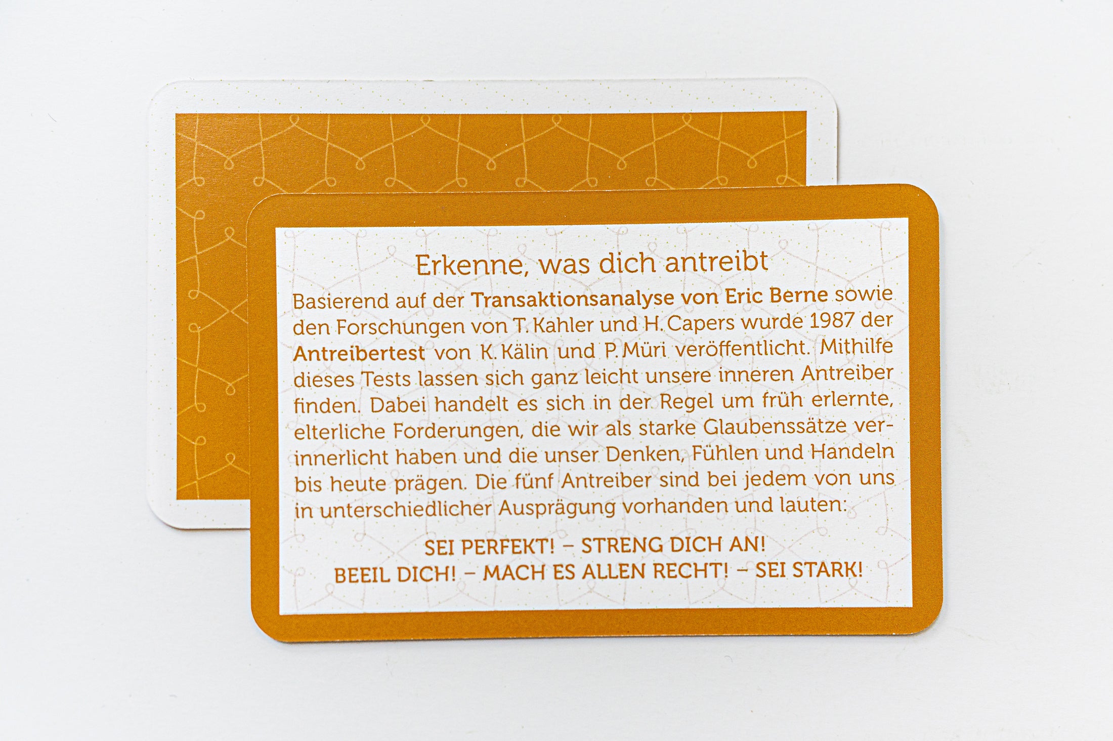 Der AntreiberTest lädt dich ein auf eine spannende Entdeckungsreise zu deinen inneren Antreibern. Er macht sichtbar, was dich antreibt – und wo du dich selbst unter Druck setzt. Du erkennst typische Stressmuster und findest neue, gesunde Wege, mit ihnen umzugehen.